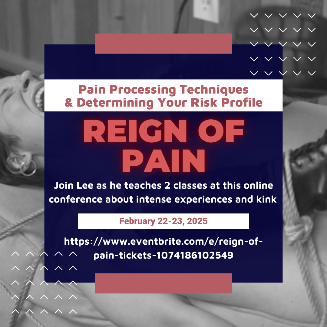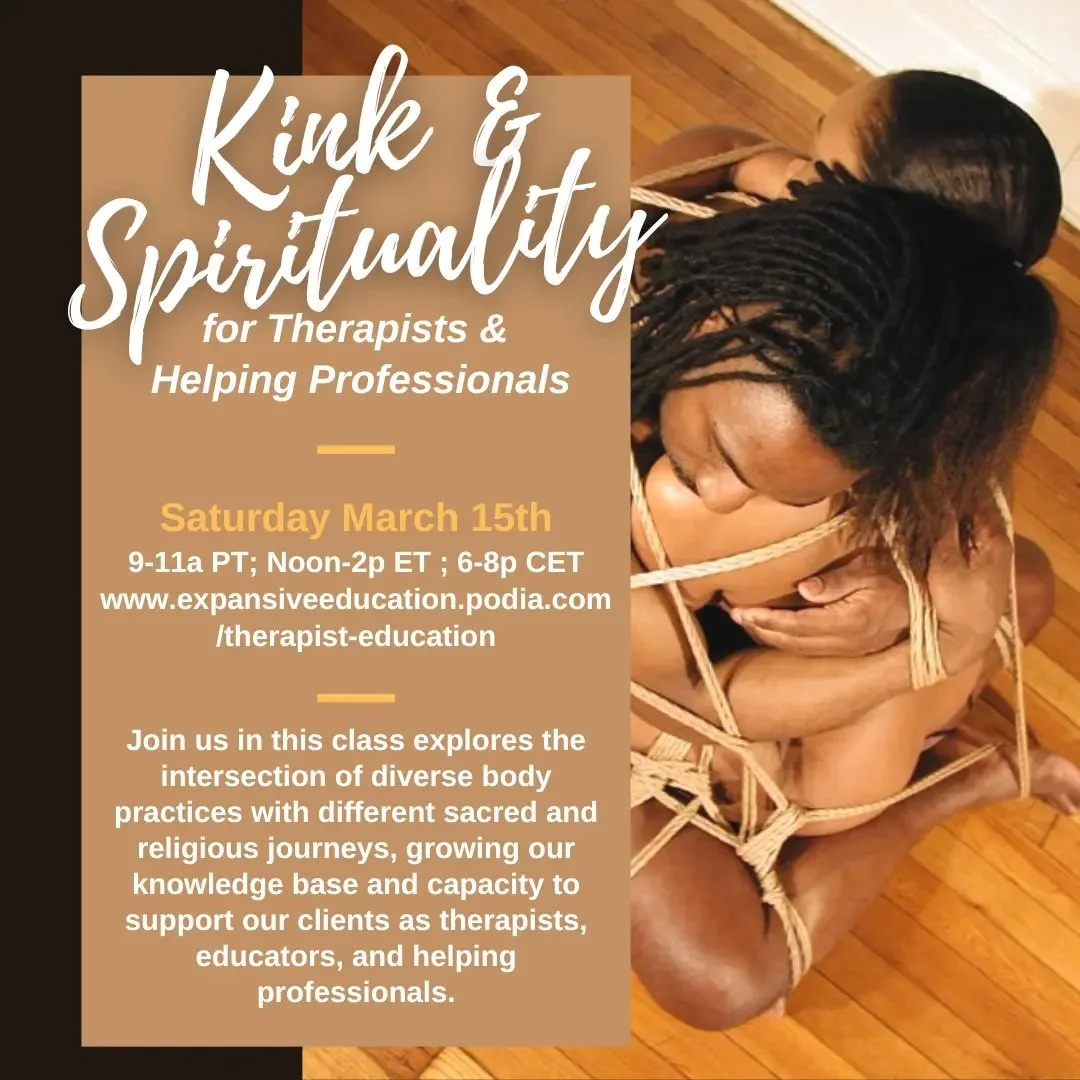 There is more too over the next month! An online class on Primal Play, another on effective communication and presentation skills for educators, and even a course with CE credits for therapists and helping professionals about kink and spirituality. You can learn more about all of those below, check them out.